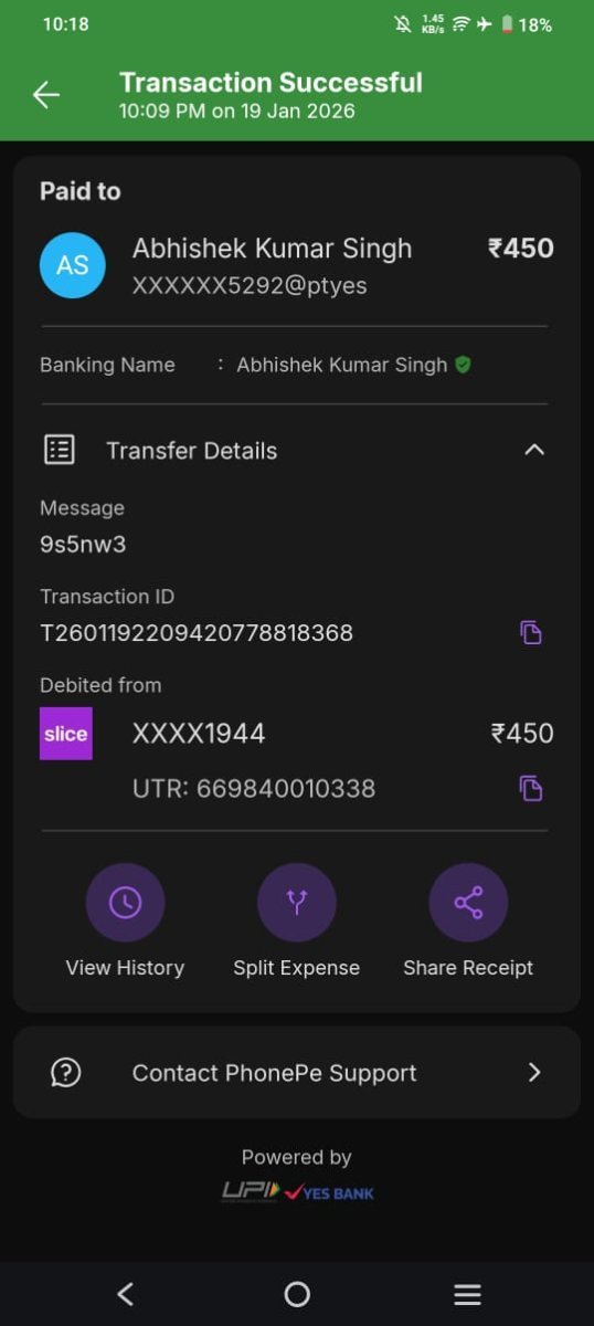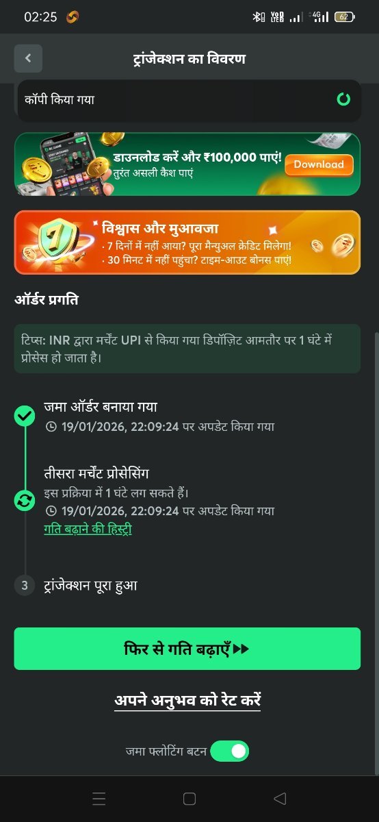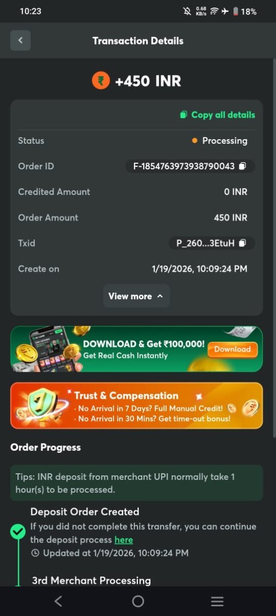 Send your payment De se jyada ho gaya abhi tak mere PC ke bullet mein nahin hua tha red स्टेटस: प्रोसेसिंग ऑर्डर ID: F-1854763973938790043 जमा की गई राशि: 0 INR ऑर्डर राशि: 450 INR Txid: P_260...3EtuH पर बनाएं: 19/01/2026, 22:09:24 -