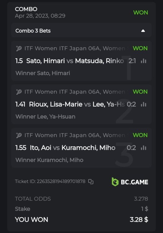 1 Medium task sports Bet: $1.04=16 TRX current price. ODDS: 2.68 2258353283112509653 2 Easy Peasy https://bc.game/#/sd/117IDCP2F6CZ6B Sports 2258359118479896653 -
