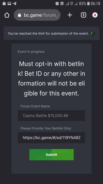 I've joined the forum event; Now it's your turn to win generous rewards from BC.GAME! Help me! I can not submit new win!