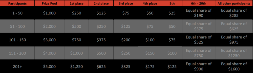 8. Hey Hhao, Please you can calculate yourself based on your wins, or await the event's conclusion and leaderboard.